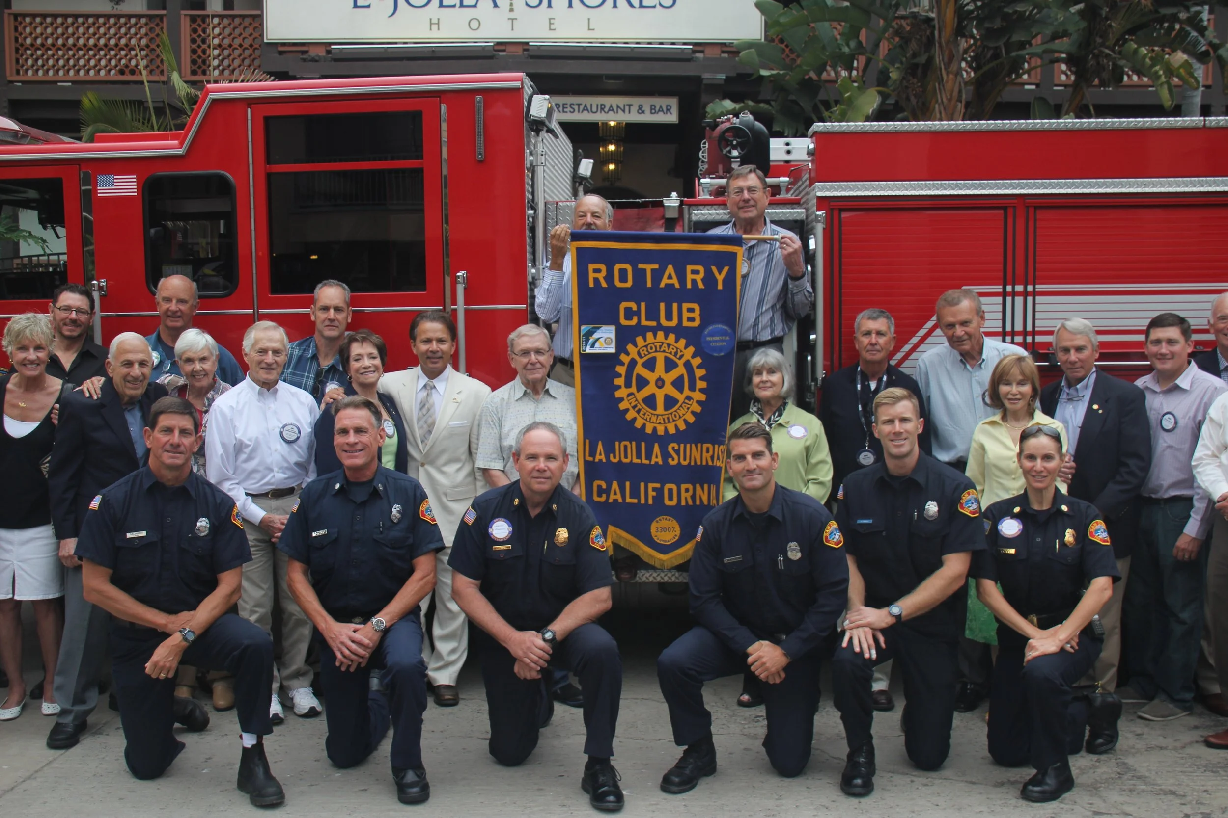 Mark standing with San Diego Firefighters as President of the La Jolla Sunrise Rotary Club